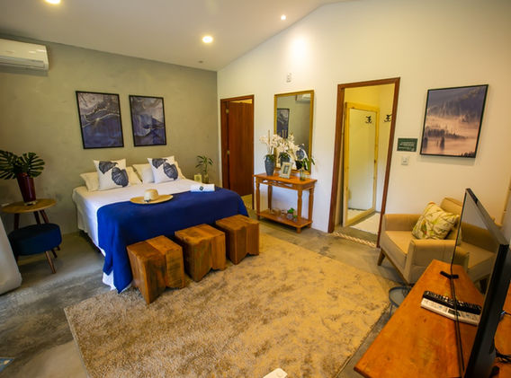Chalé Premium - Nessa categoria, possuímos o Chalé Araruna. Esta acomodação é a mais ampla do complexo, contando com uma sala de estar.